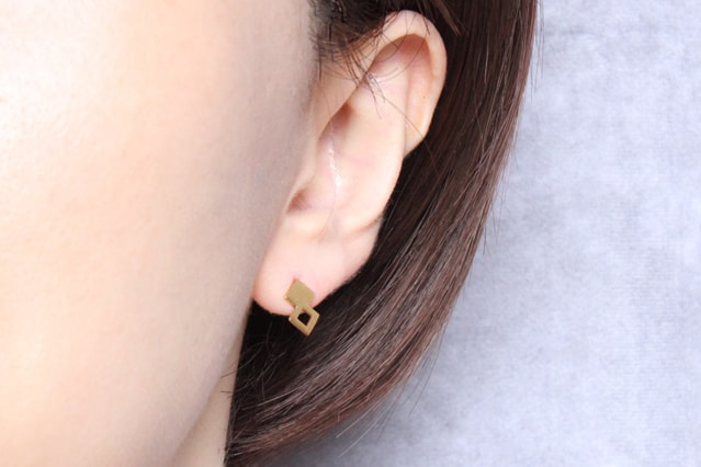 2つのスクエアが連なった左右アシンメトリーのデザインのスタッドピアス。